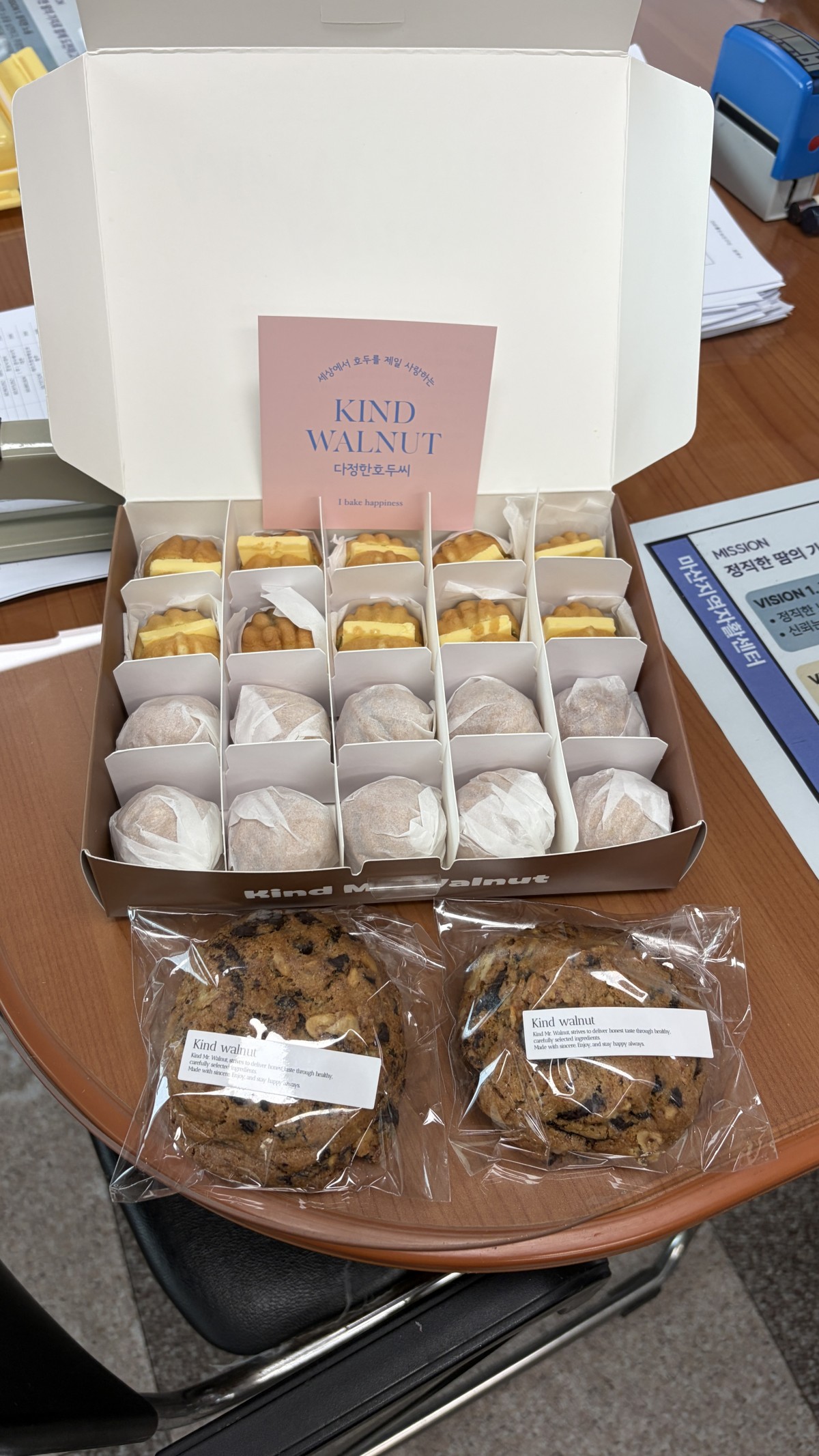 생일을 맞이하신 분들께 다정한호두씨의 호두과자와 쿠키를 전달해드렸습니다.