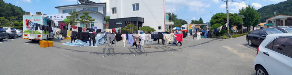 수해민들의 이불, 의류, 커튼 등 세탁하기 어려운 대형 빨래들을 수거·세탁·건조하여 전달했습니다.