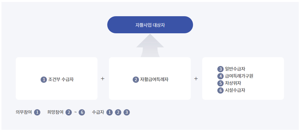 국민기초생활보장법에 의한 저소득층에게 자활을 위한 근로의 기회를 제공하여 자활기반을 조성하는 사업입니다.